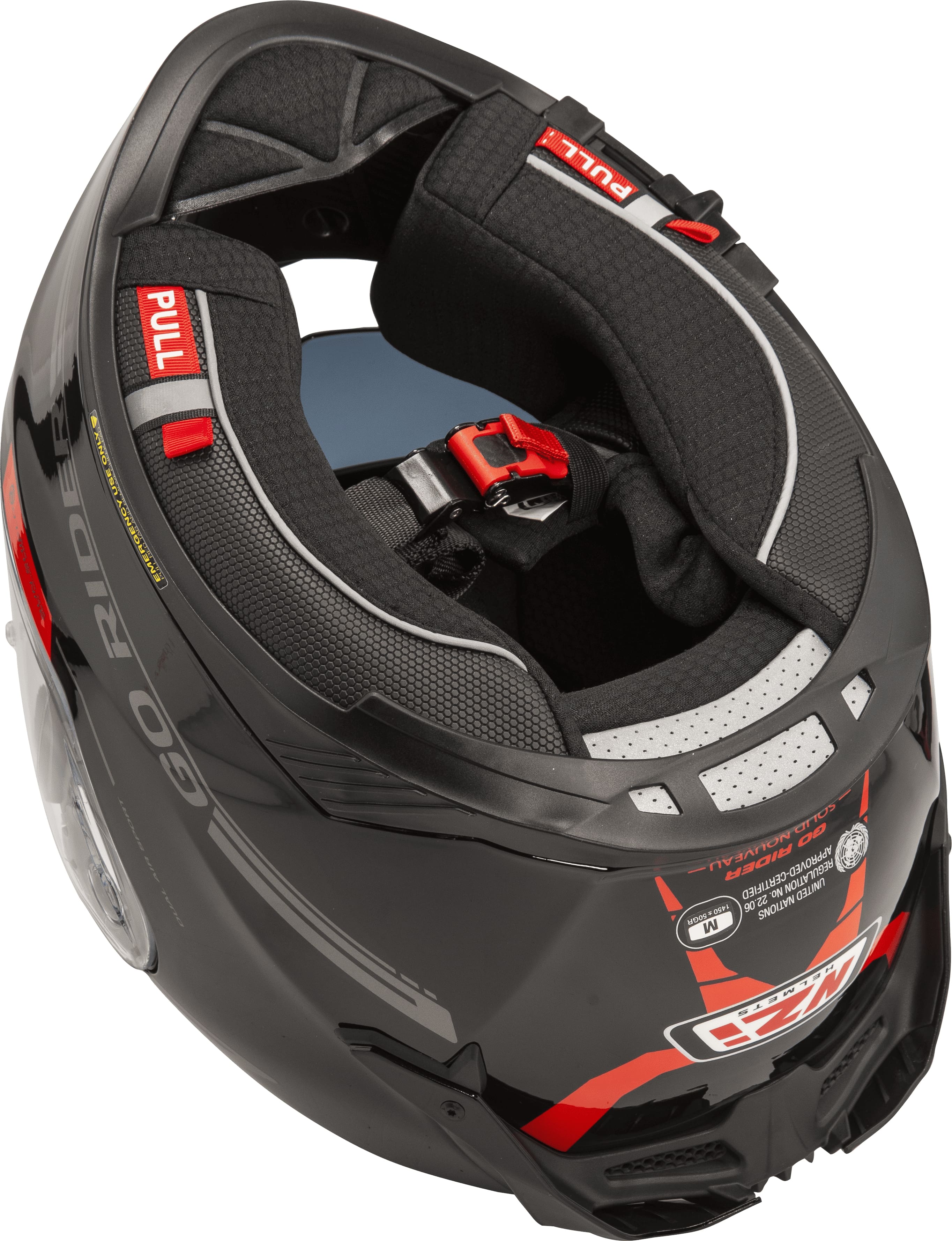 Homologação 2206 certificada e aprovada para segurança passiva. Aerodinâmica, acústica e eficiência da ventilação aprovada em túnel de vento. Fácil de operar com apenas uma mão e com luvas calçadas. Elementos reflectores no interior. Narigueira ajustável. Visor solar e viseira de policarbonato, termoformada e com tratamento anti risco. Facilidade de extração das almofadas exteriores e de retirada do capacete pós acidente. Homologação para Bluetooth e inclusão de video câmara. Canal para as astes dos óculos.