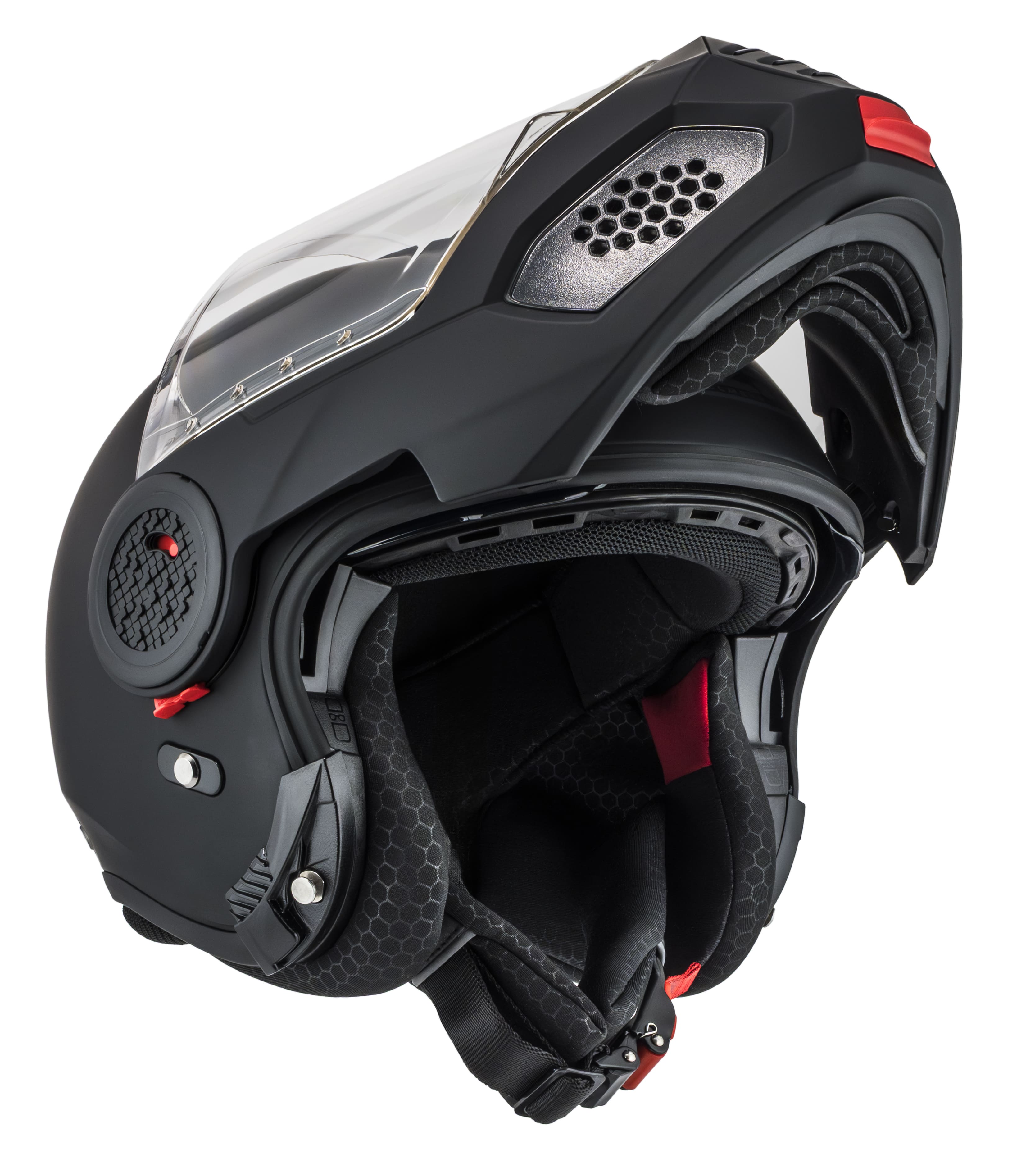 Capacete modular em termoplástico, com viseira solar, fecho micrométrico, ventilado, com interior removível e lavável, viseira termoformada de alta resistência, com tratamento anti risco. HOLOGAÇÂO 2206