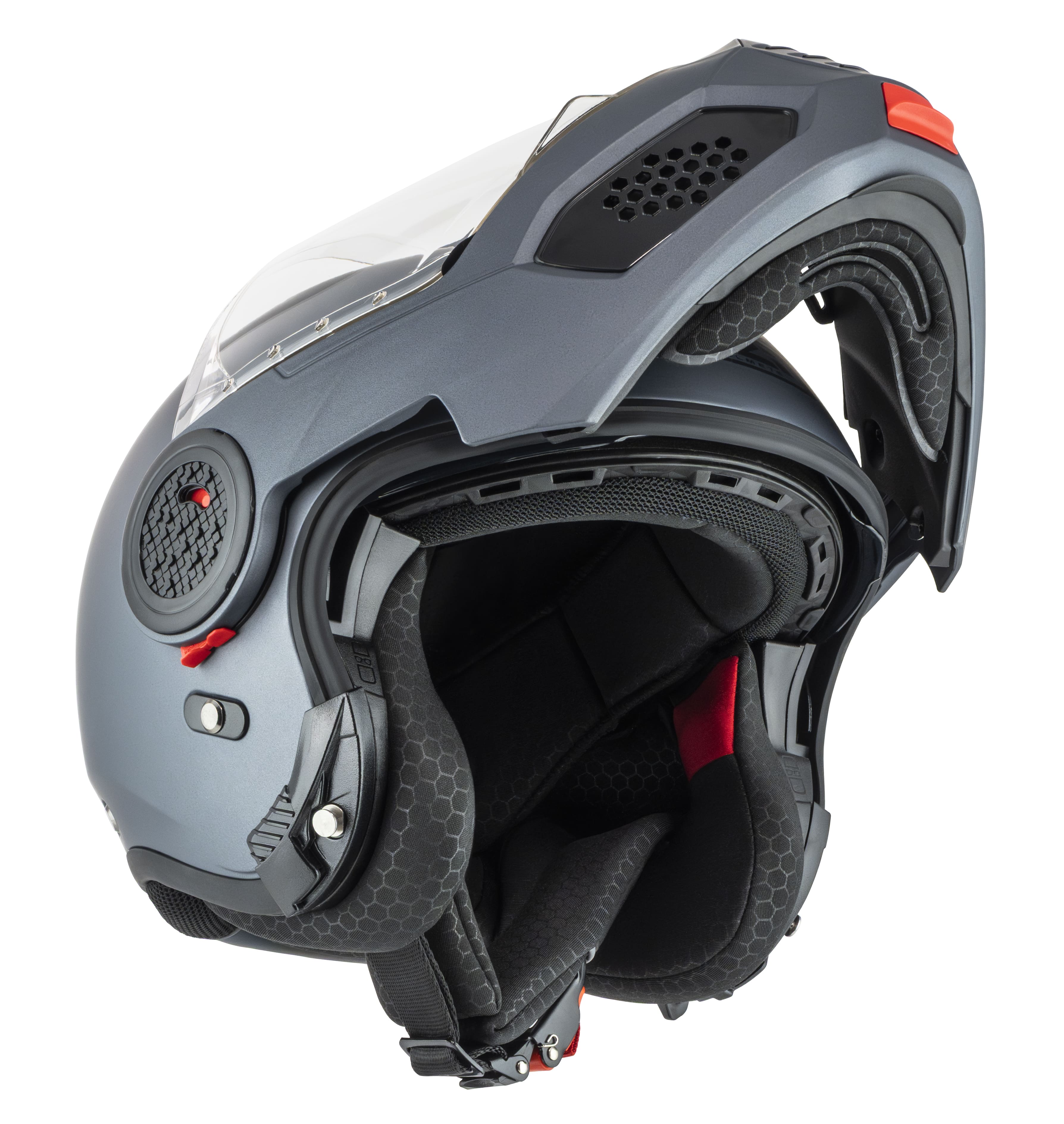 Capacete modular em termoplástico, com viseira solar, fecho micrométrico, ventilado, com interior removível e lavável, viseira termoformada de alta resistência, com tratamento anti risco. HOLOGAÇÂO 2206